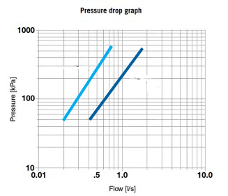 | Pressure (kPa) | 15mm Outlet Flow (L/min) | 20mm Outlet Flow (L/min) |